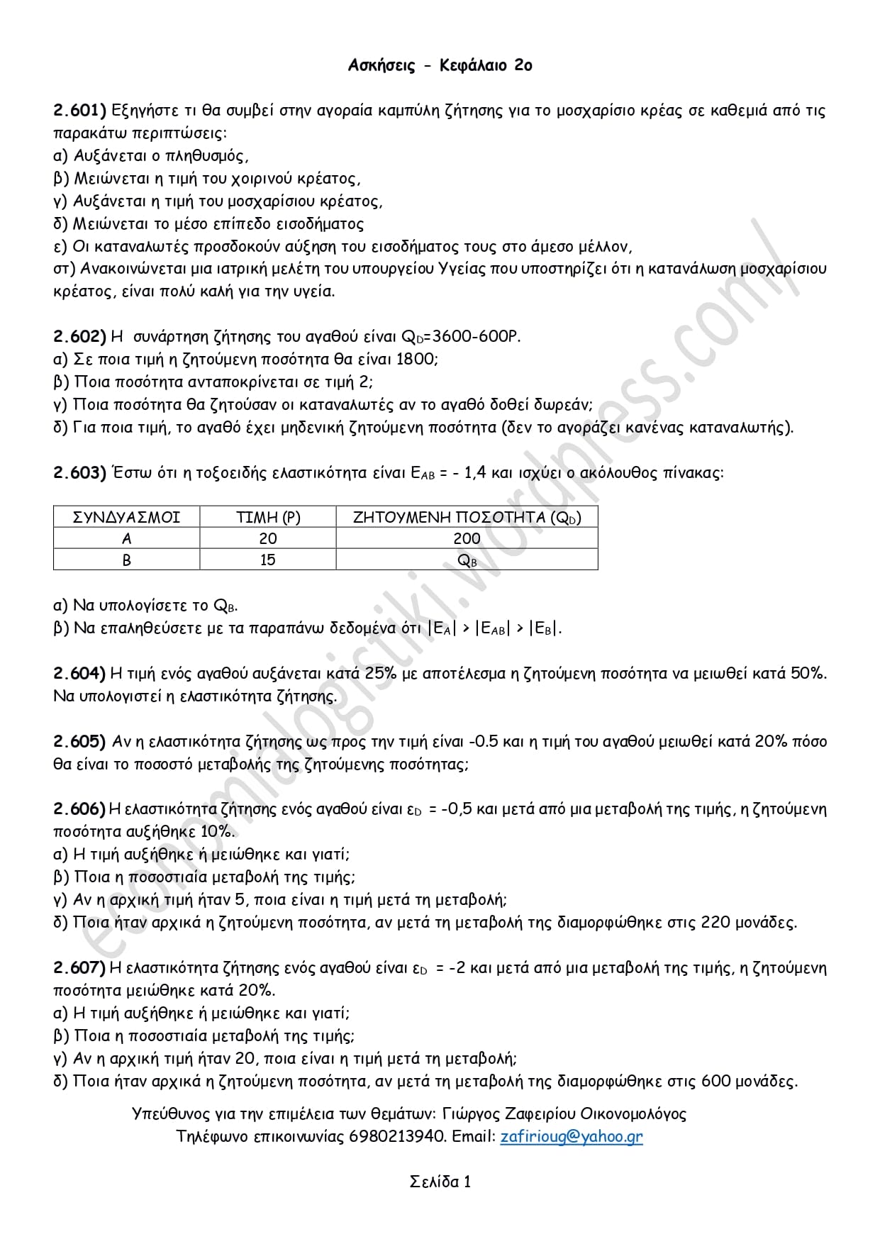 Η αρίθμηση ξεκινά από το νούμερο 601 όπως όλες οι ασκήσεις, ενώ προηγείται ο αριθμός 2, δηλωτικός του κεφαλαίου. Έτσι η άσκηση 2.611 είναι η άσκηση Νο 11 από το κεφάλαιο 2.