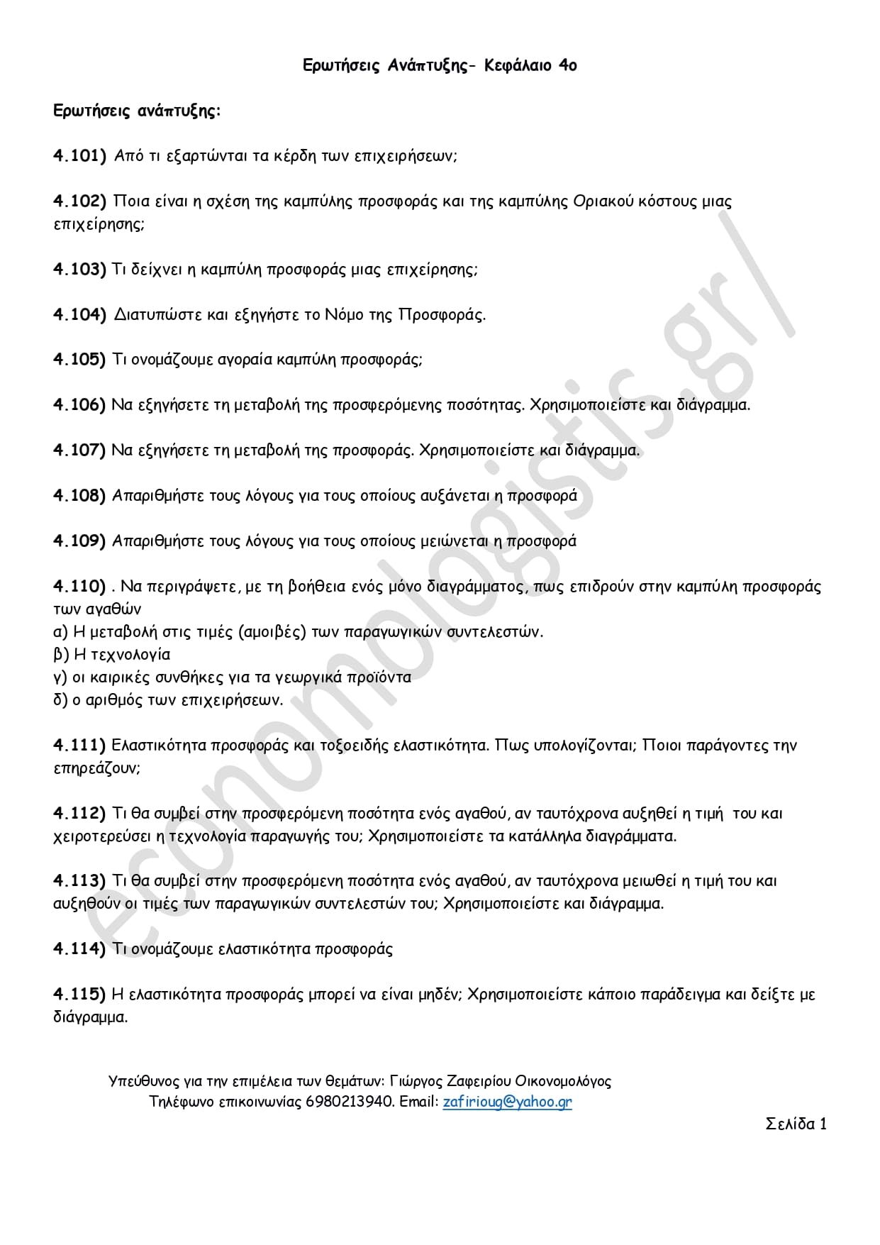 Στείλτε τις απορίες/ παρατηρήσεις σας, στο mail: zafirioug@yahoo.gr ή επικοινωνήστε μέσω Μέσων Μαζικής Δικτύωσης.