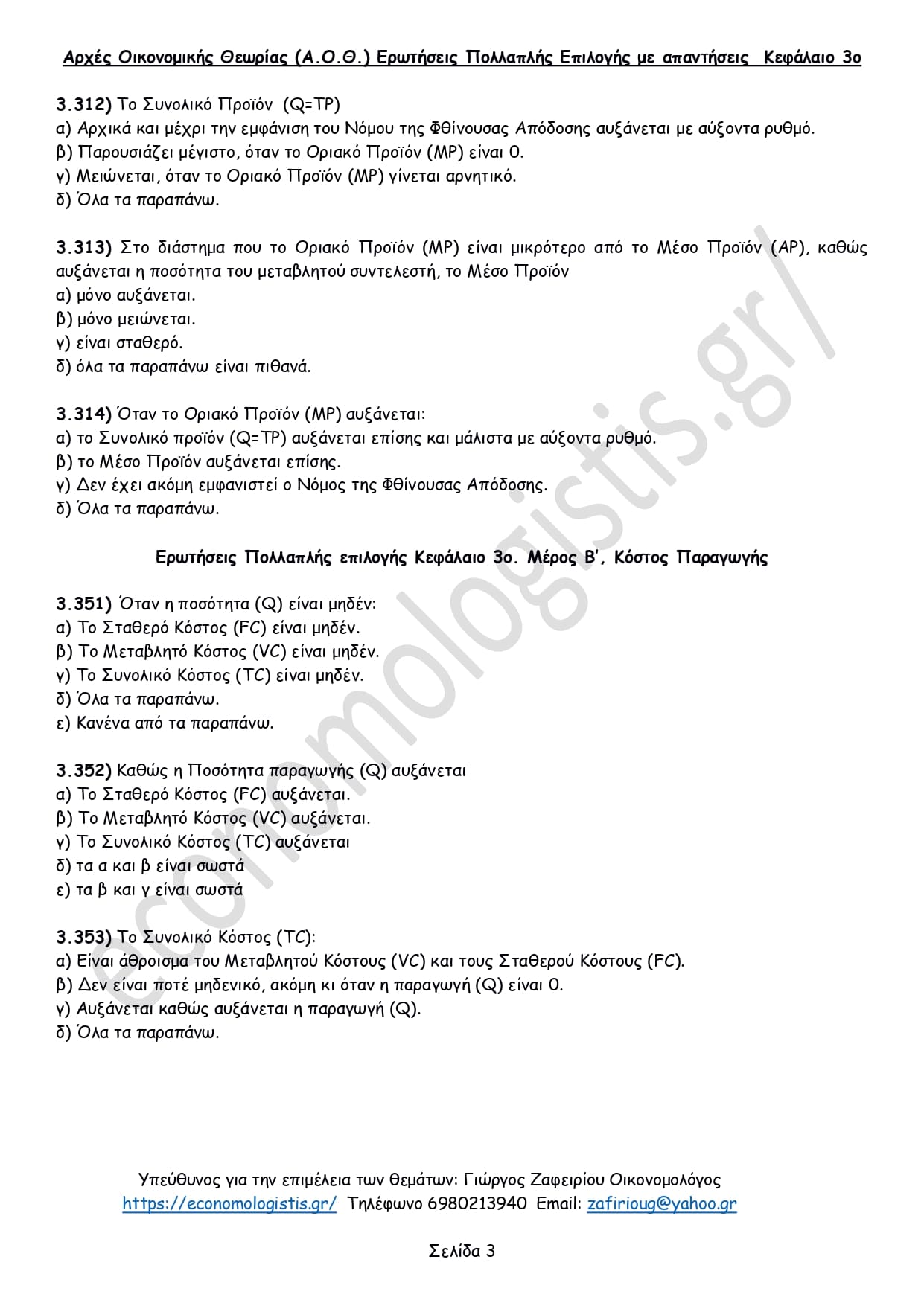 Έτσι η ερώτηση 3.403 είναι Ερώτηση τύπου Πολλαπλής επιλογής Νο 3 από το κεφάλαιο 3 μέρος Α΄ Παραγωγή, ενώ η 3.457 είναι Ερώτηση τύπου Πολλαπλής επιλογής Νο 7 από το κεφάλαιο 3 μέρος Β’ Κόστος Παραγωγής.